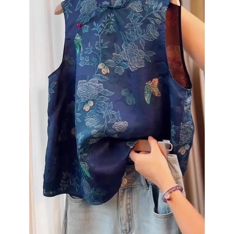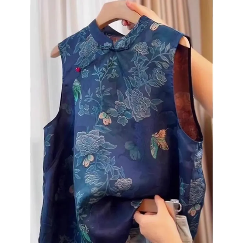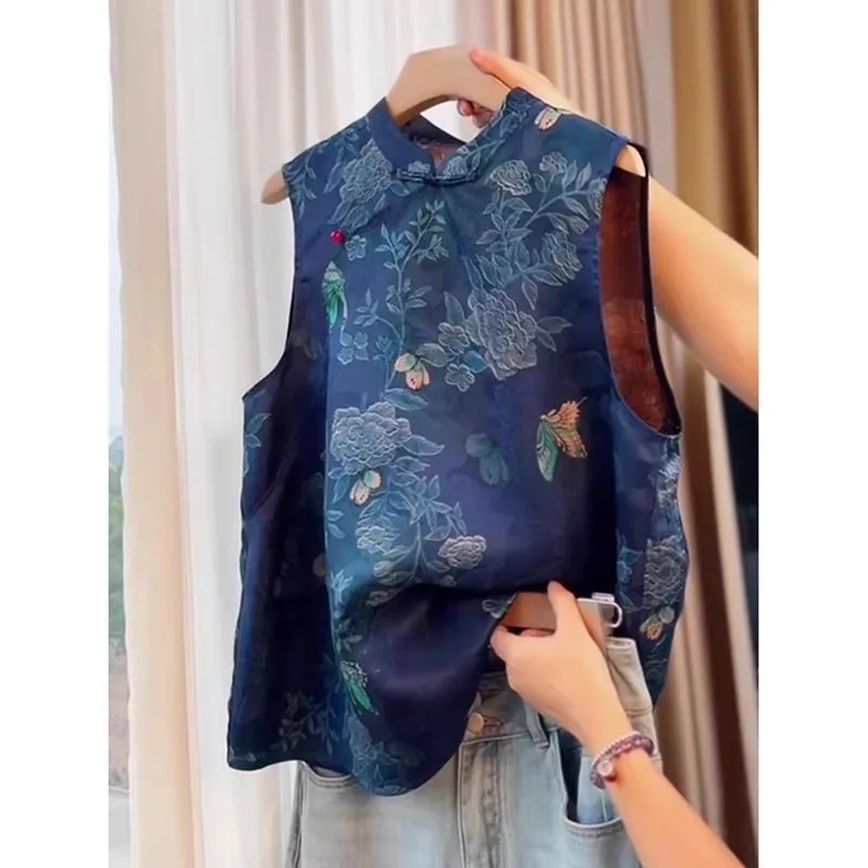 衣都精品- 新款中式國風復古藍色馬甲上衣