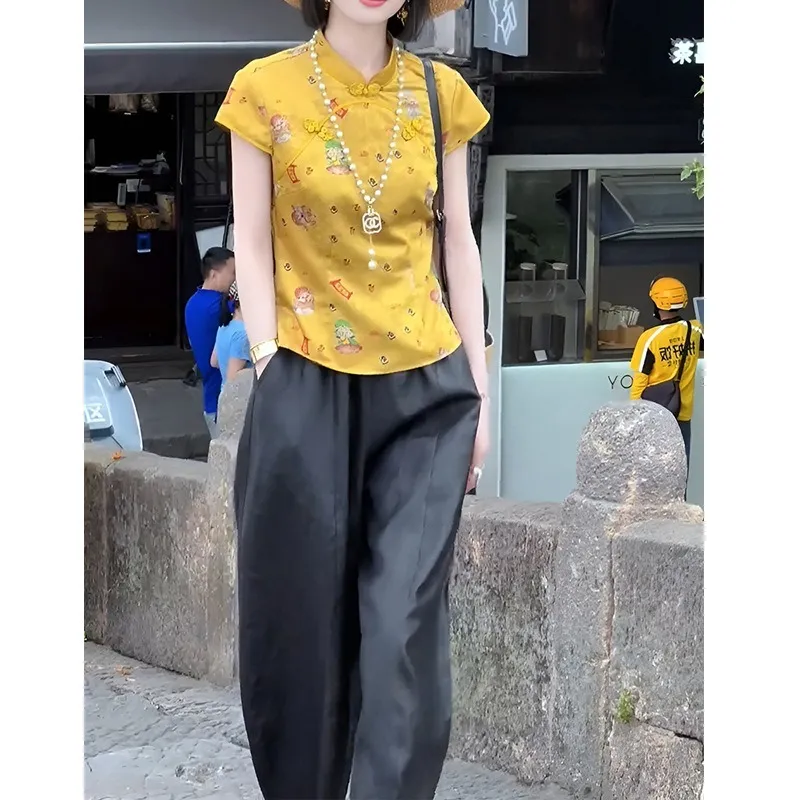 衣都精品- 新款中國風小眾不撞款印花馬甲上衣
