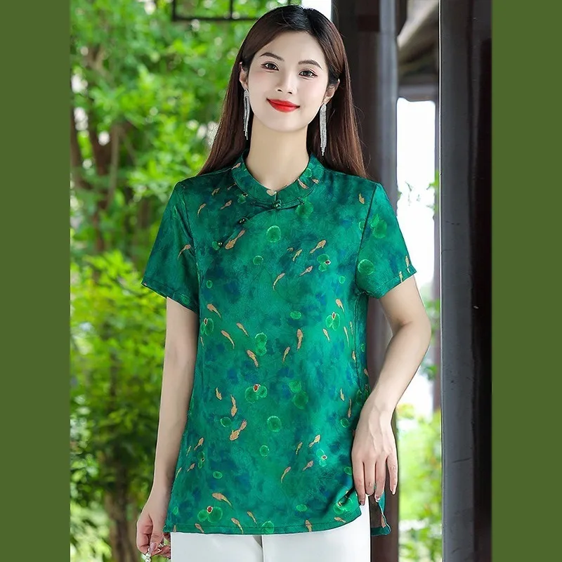 衣都精品- 新款復古立領斜襟緞面盤扣上衣