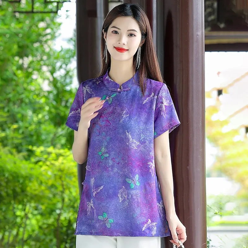 衣都精品- 新款中國風蝴蝶暈染立領盤扣無袖上衣