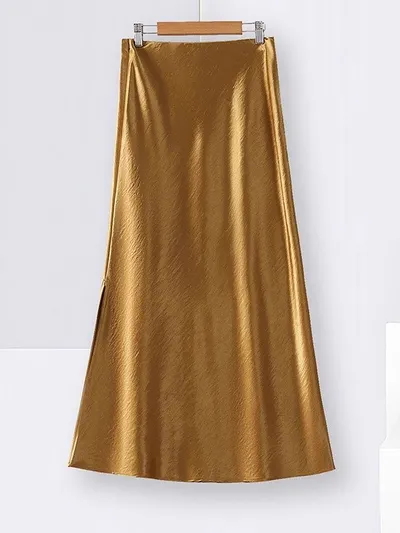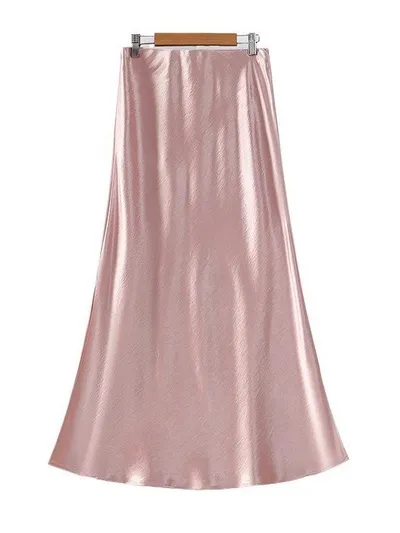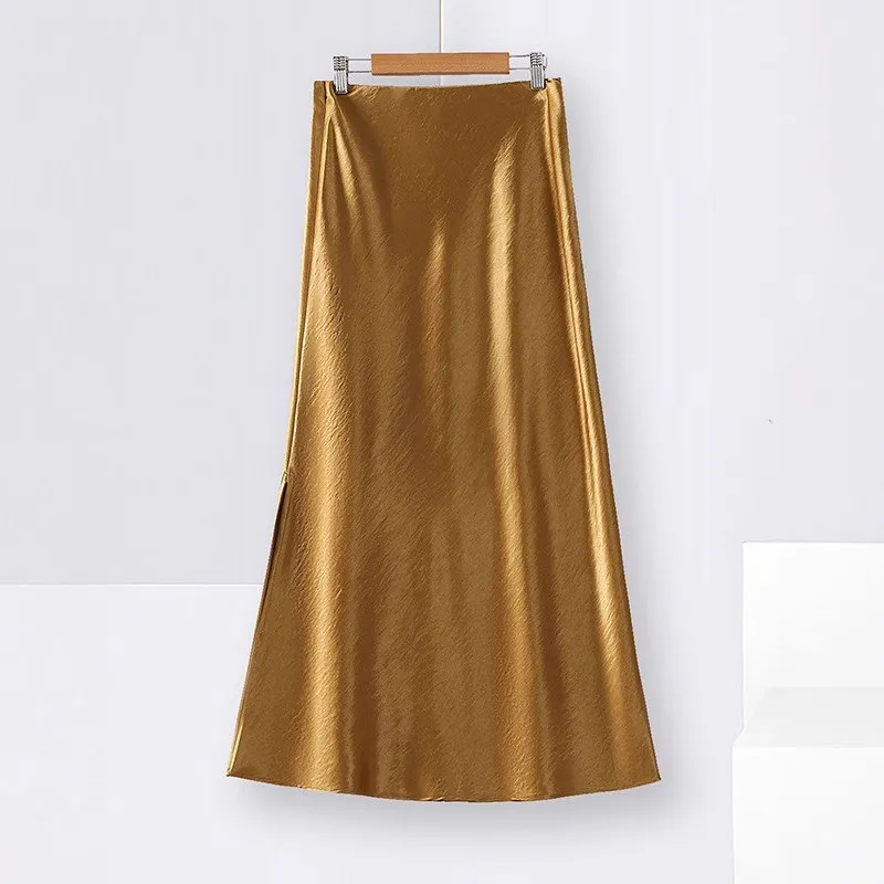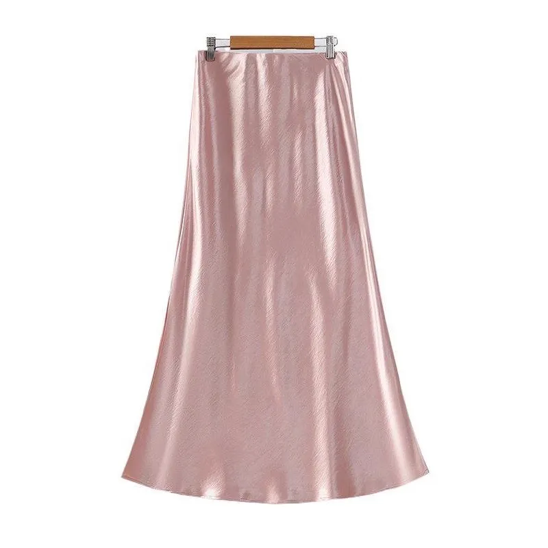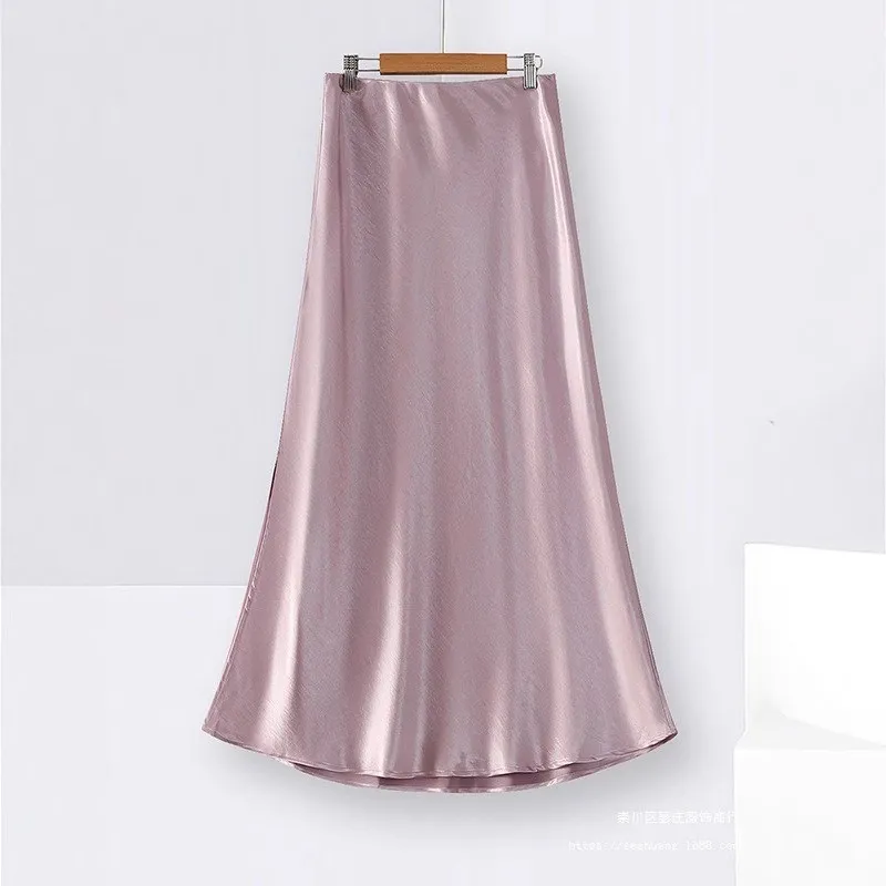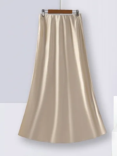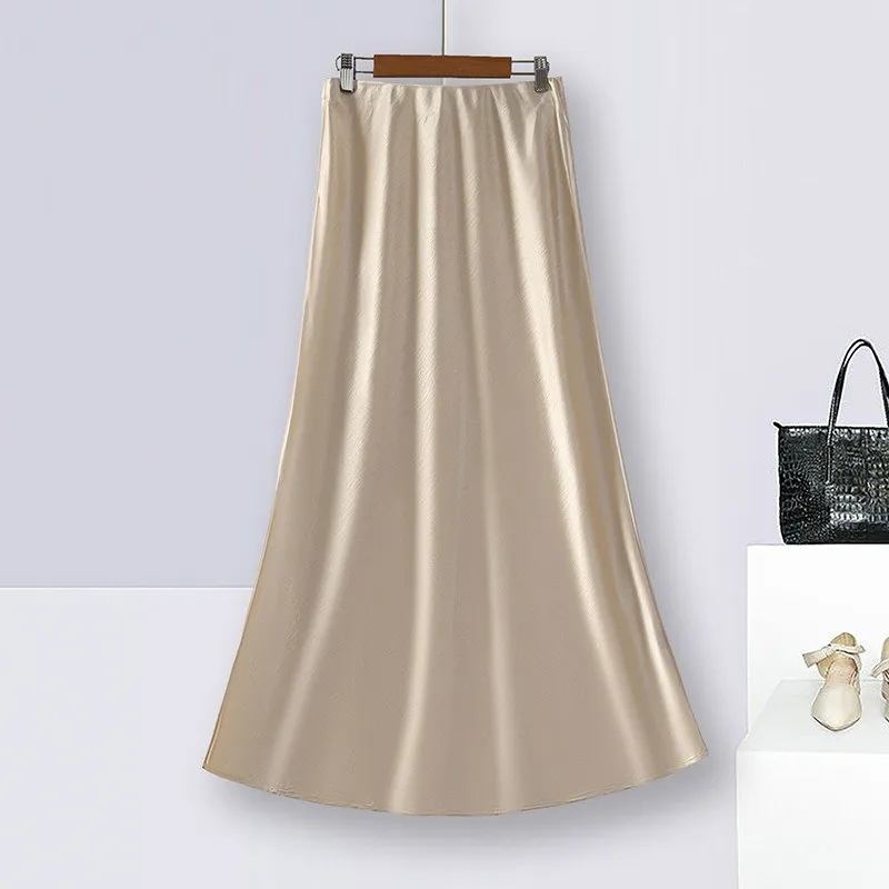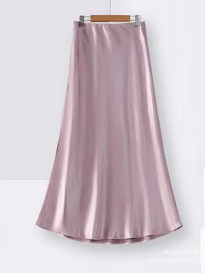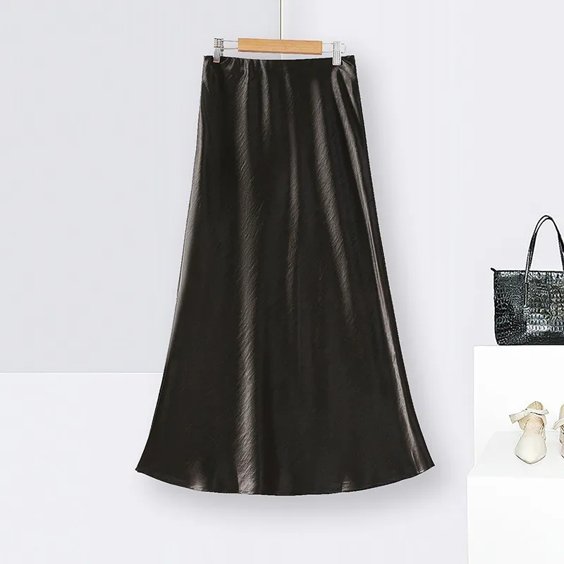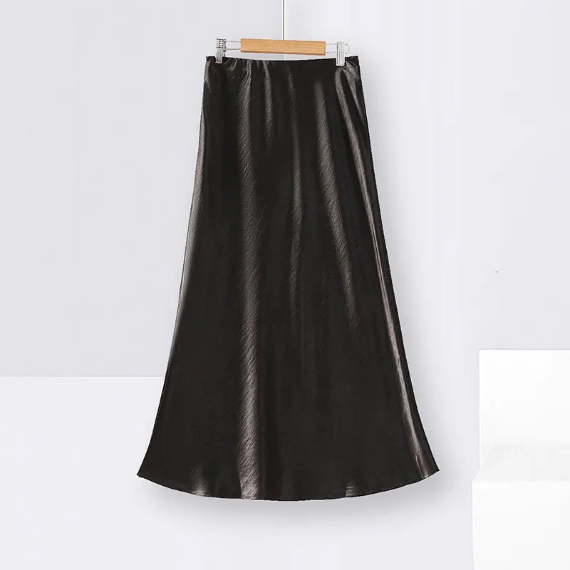 衣都精品- 新款顯瘦氣質緞面法式純色百搭半身裙