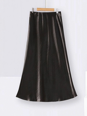 衣都精品- 新款顯瘦氣質緞面法式純色百搭半身裙