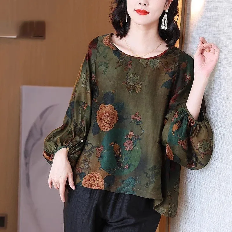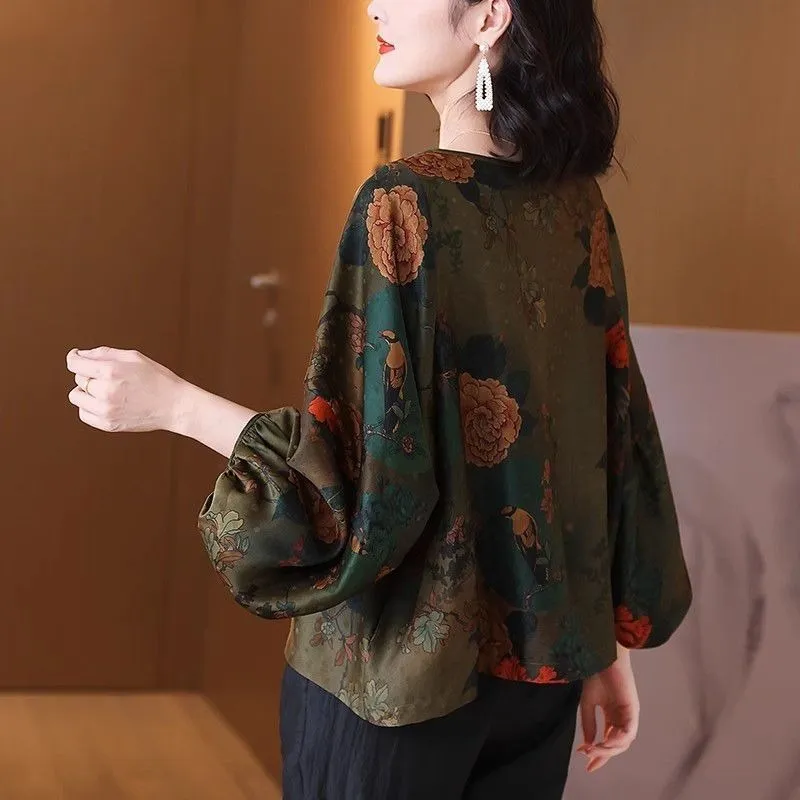 衣都精品- 新款中國風V領斜襟數位印花上衣