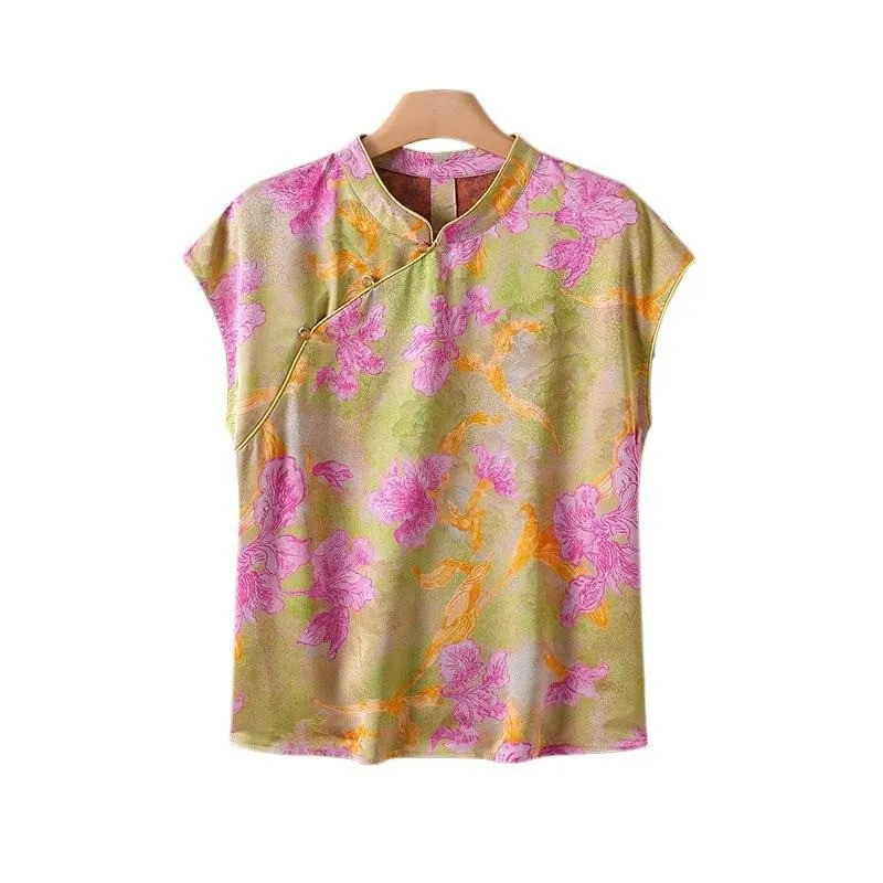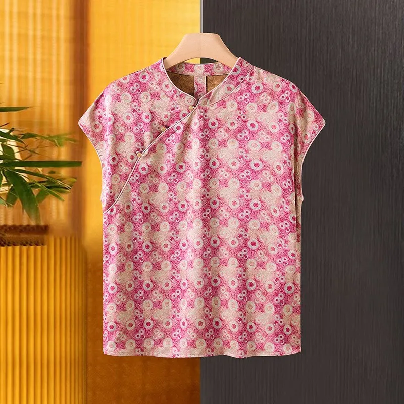 衣都精品- 新款斜襟盤扣立領氣質無袖背心上衣
