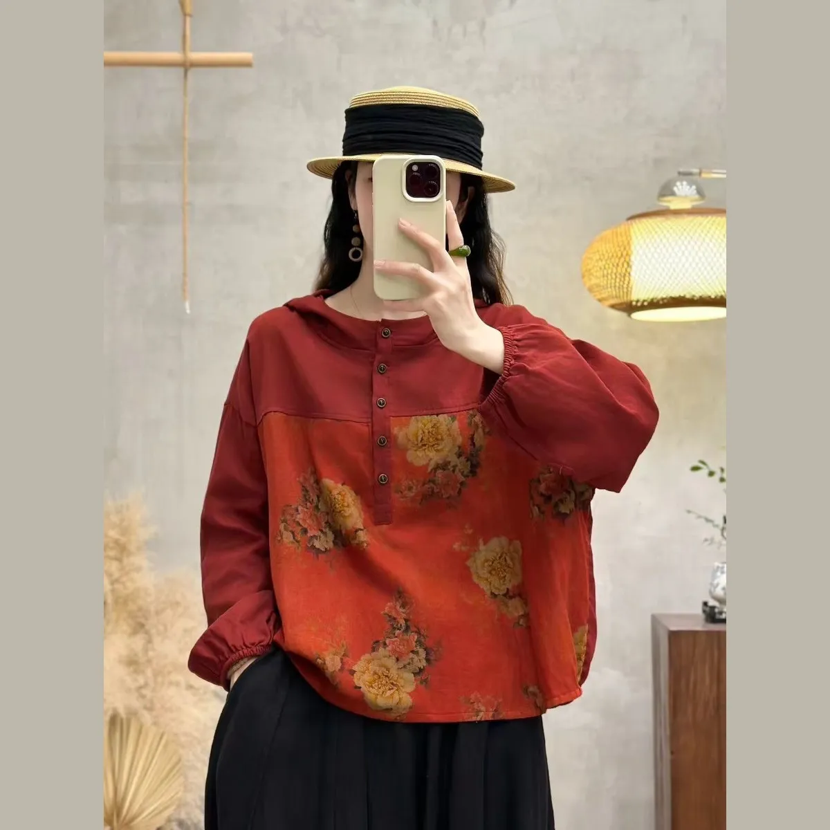 衣都精品- 新款洋氣印花斜襟珠扣氣質百搭上衣