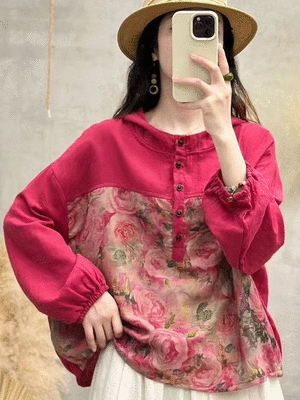 衣都精品- 新款洋氣印花斜襟珠扣氣質百搭上衣