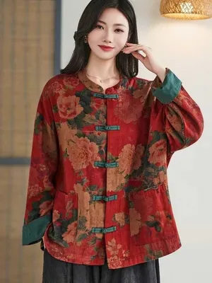 衣都精品- 新款中國風碎花大碼立領盤扣長袖外套