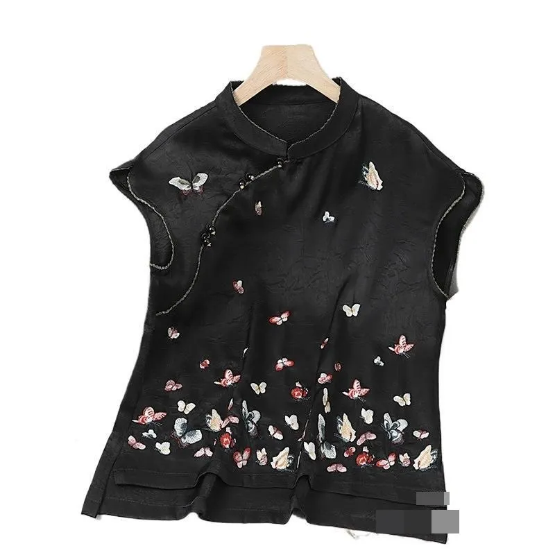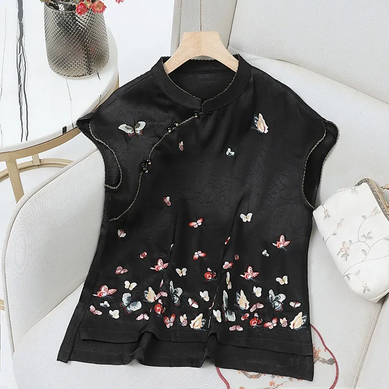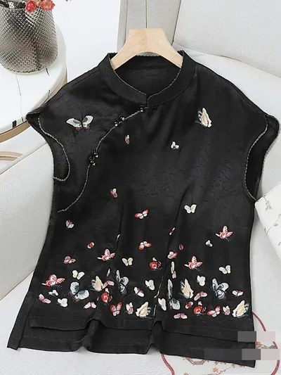 衣都精品- 新款絕美印花中國風盤扣無袖上衣