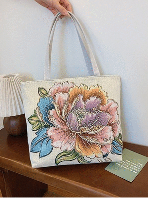 衣都精品- 新款大容量雙面刺繡手提托特包