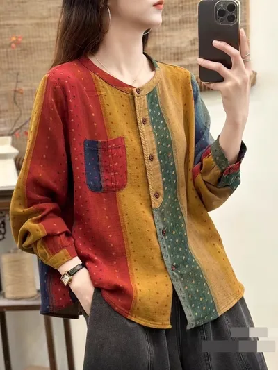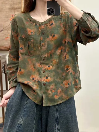 衣都精品- 新款數碼印花休閒圓領長袖開衫上衣