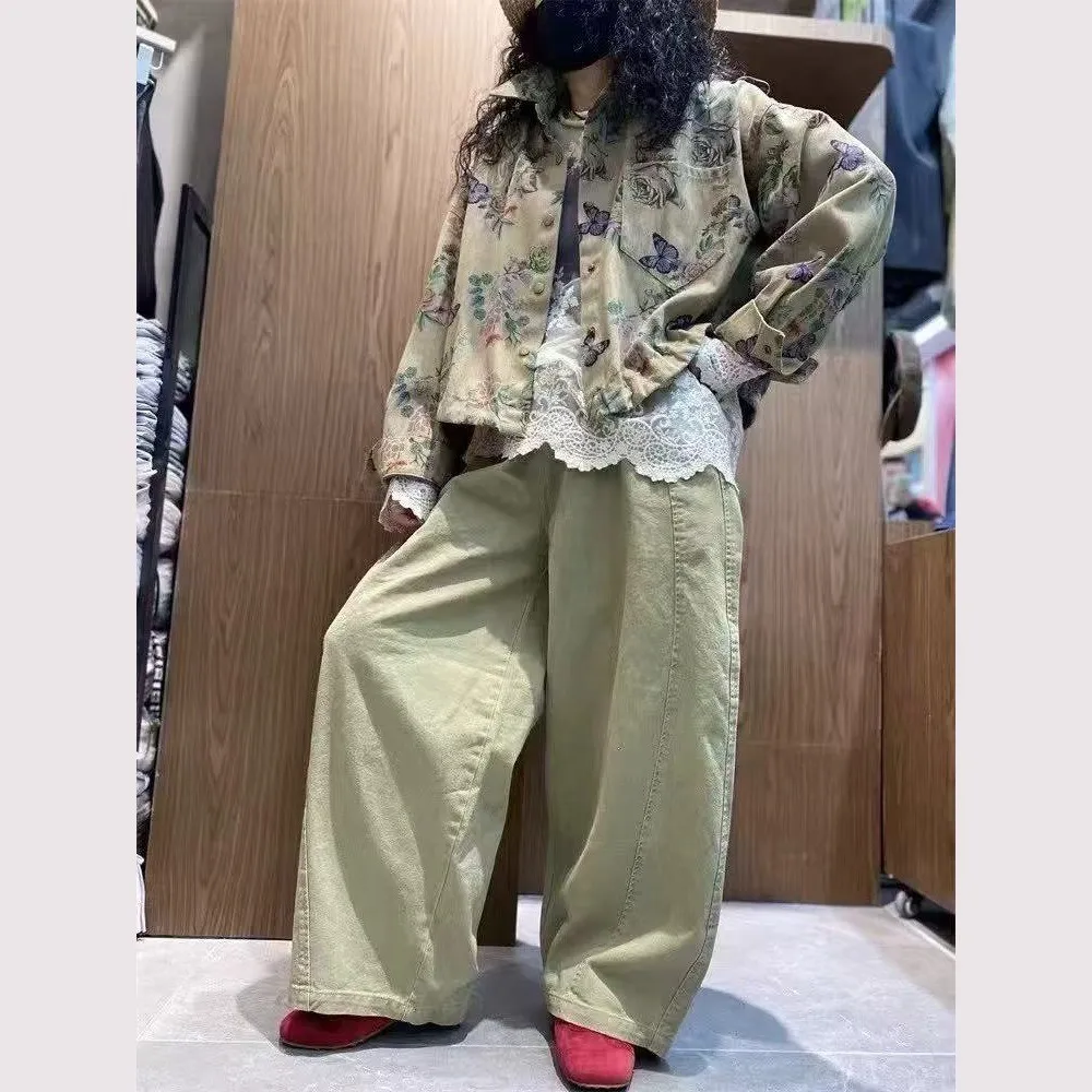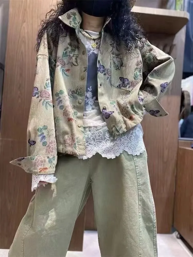 衣都精品- 新款簡約翻領單排扣印花牛仔外套