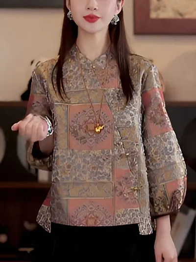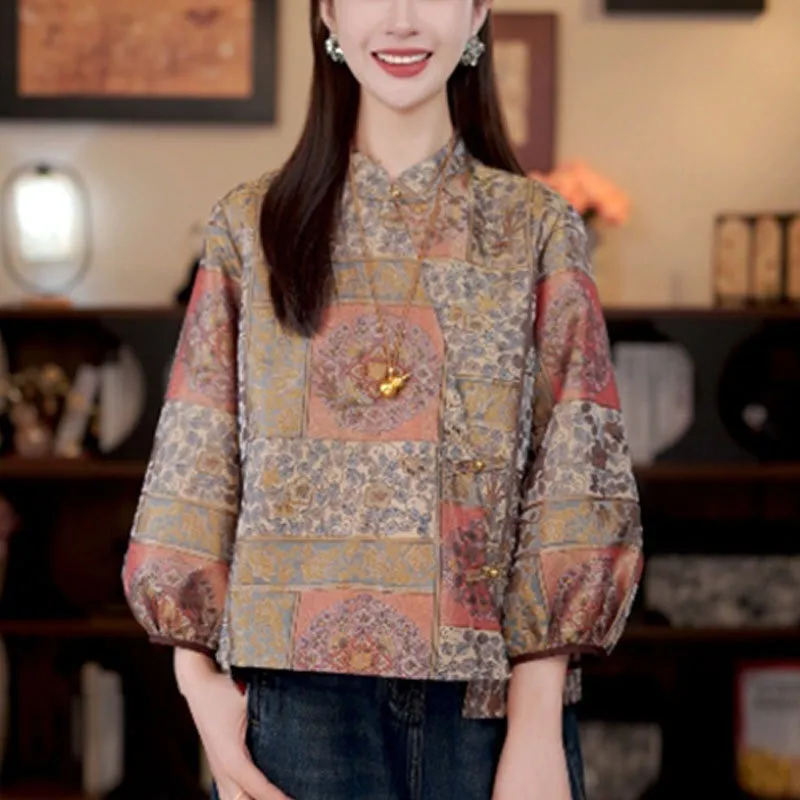 衣都精品- 新款中國風復古盤扣提花七分袖上衣