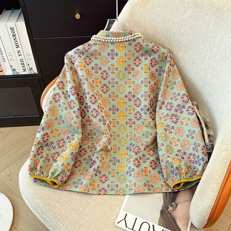 衣都精品- 新款中國風復古盤扣提花七分袖上衣