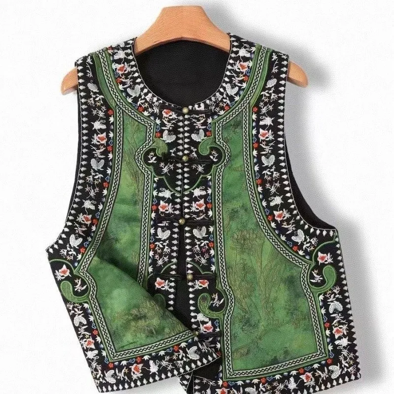 衣都精品- 新款復古仿刺繡印花盤扣背心