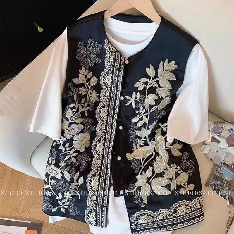衣都精品- 新款復古仿刺繡印花盤扣背心