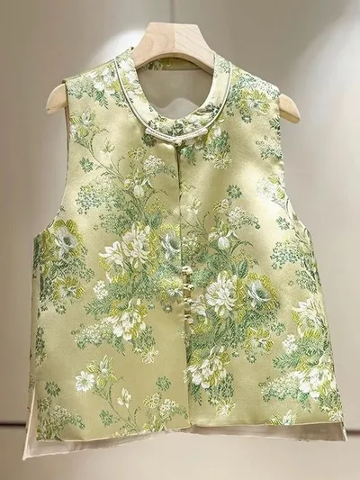 衣都精品- 新款復古仿刺繡印花盤扣背心