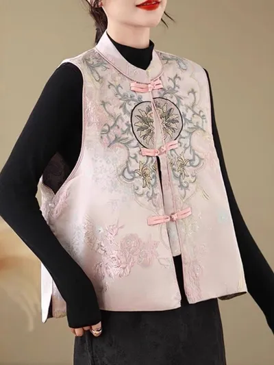 衣都精品- 新款中式提花刺繡馬甲背心上衣