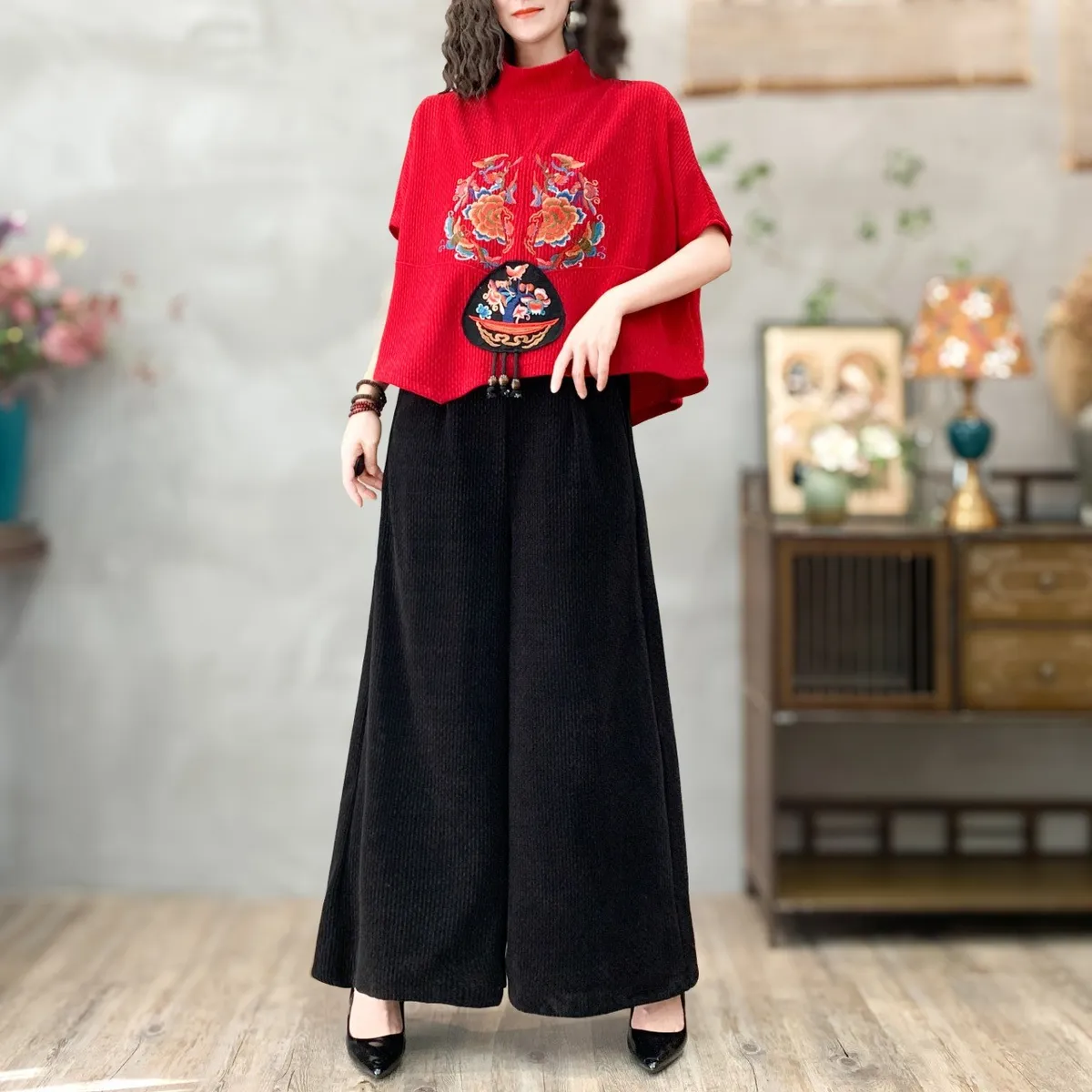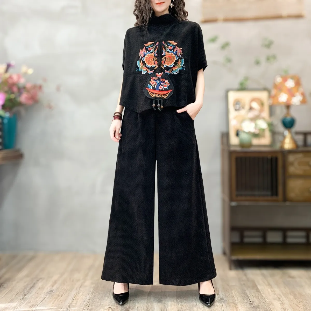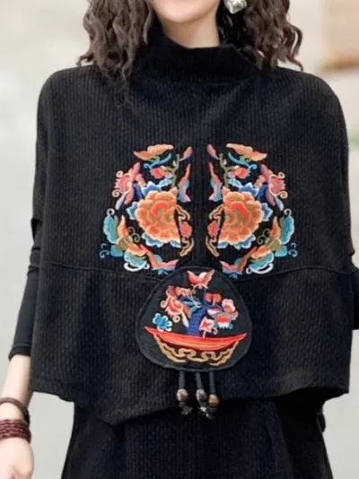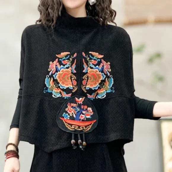 衣都精品- 新款中國風氣質寬鬆刺繡短袖上衣