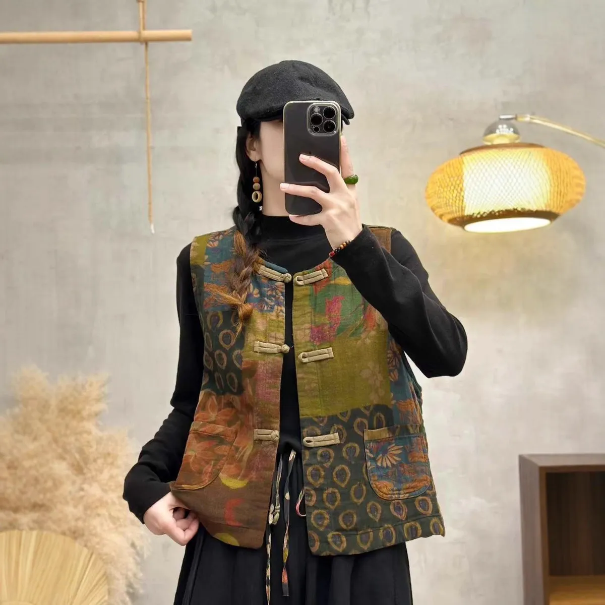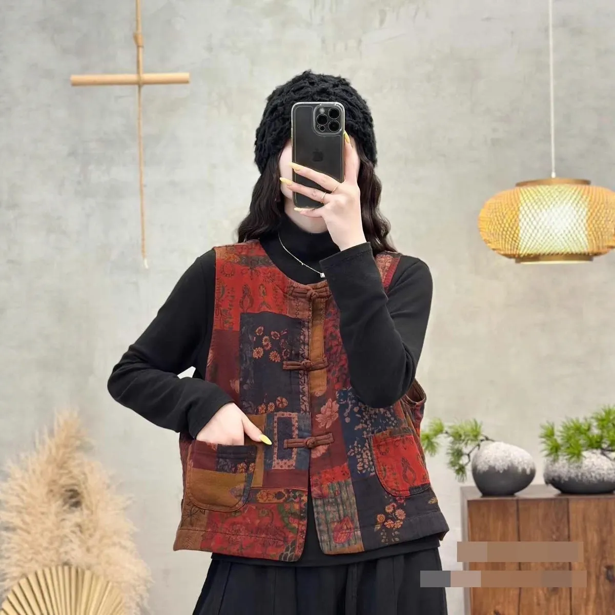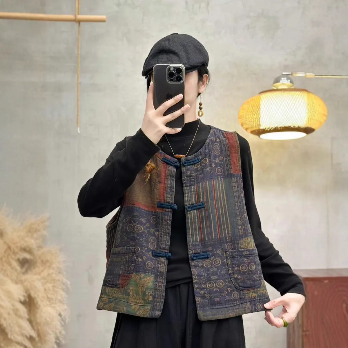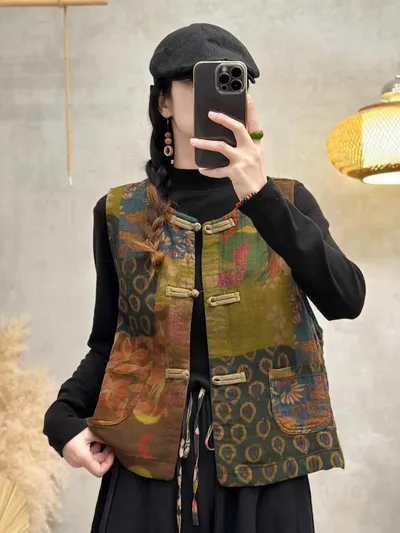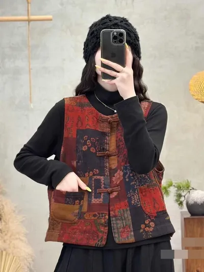 衣都精品- 新款民族風盤扣雙紗做舊馬甲外套