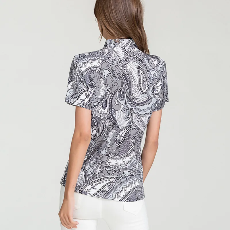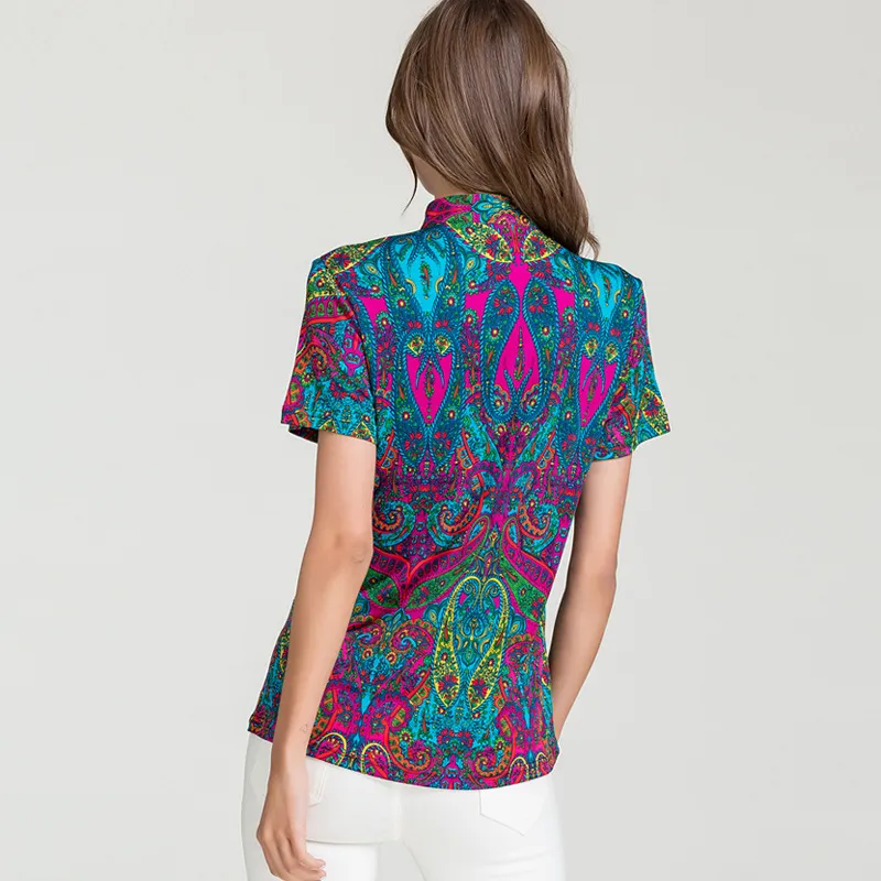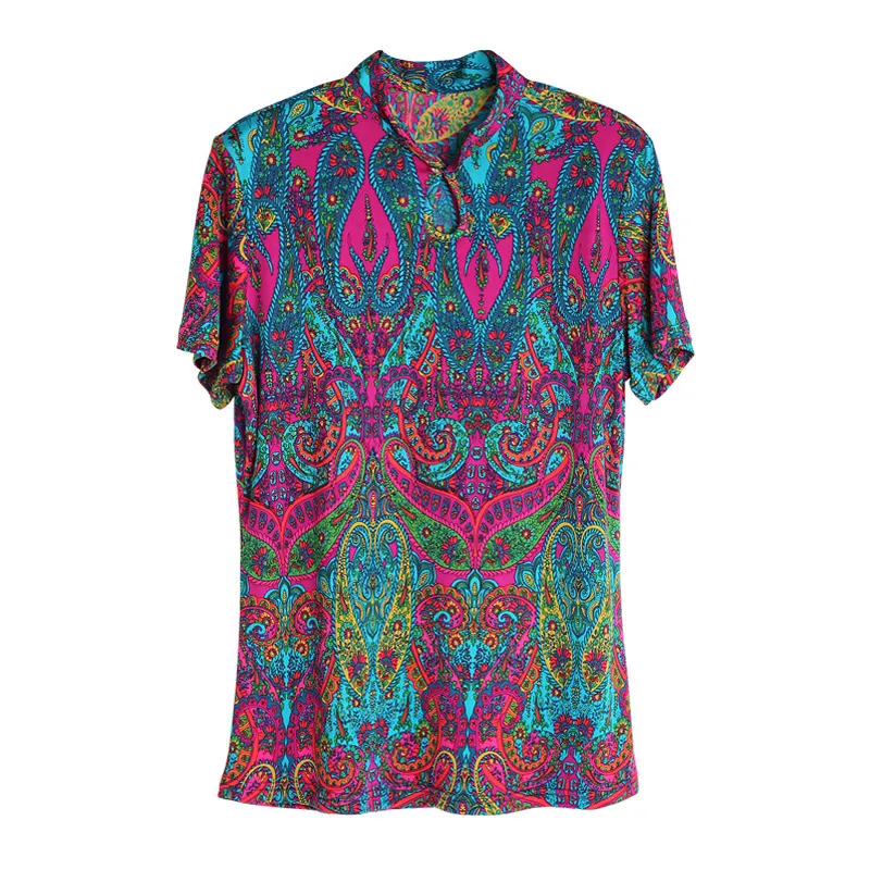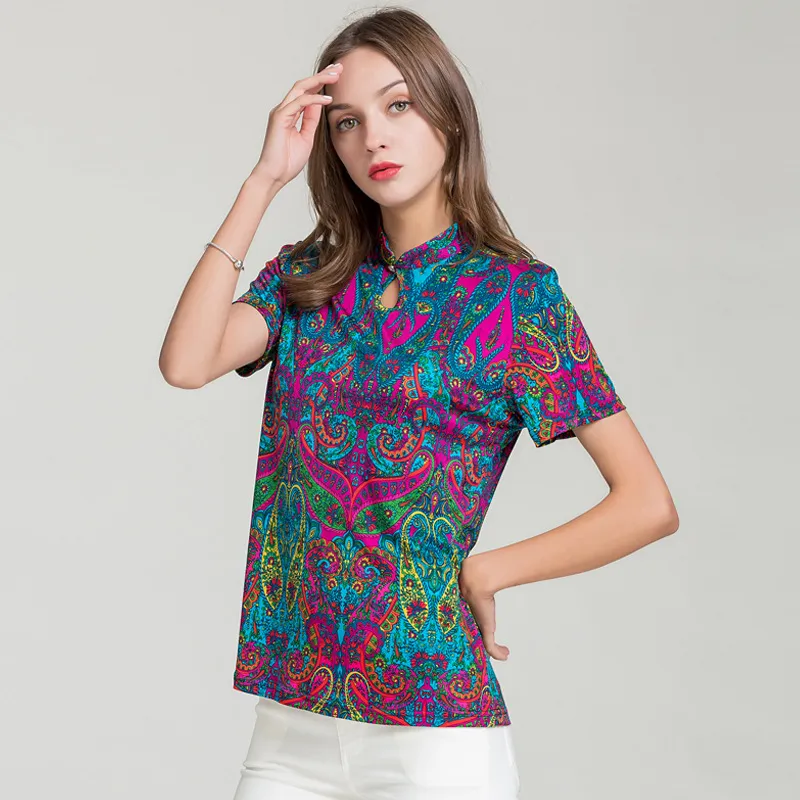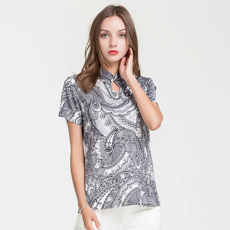 衣都精品- 2021夏季新款桑蠶絲印花半高領中袖上衣