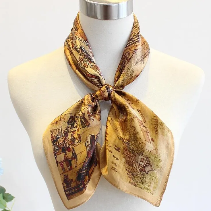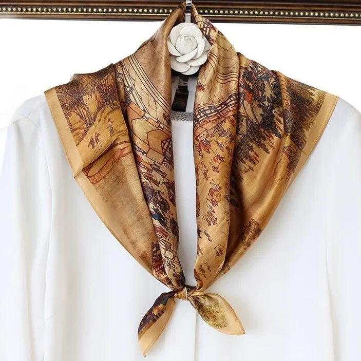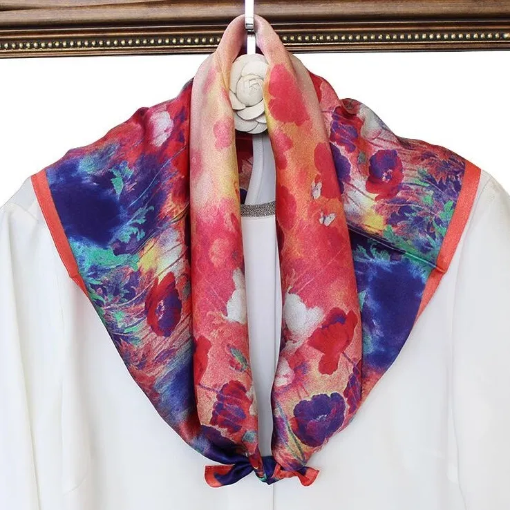 衣都精品- 2022春夏新款中國風素緞真絲印花圍巾-中方巾
