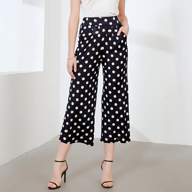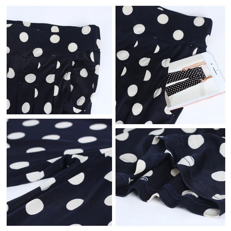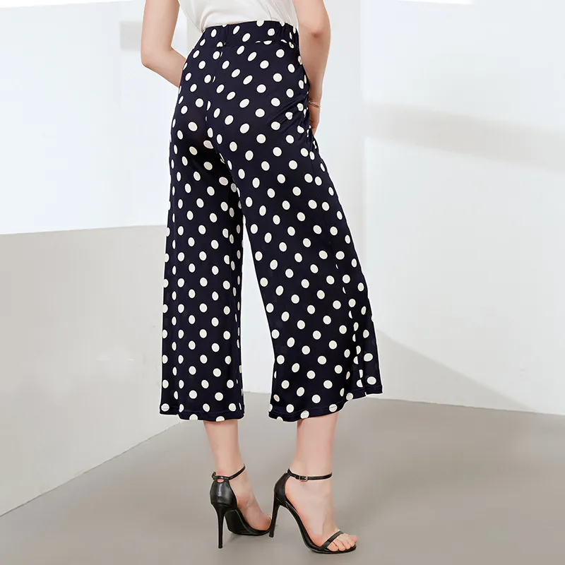 衣都精品- 2022春夏新款圓點大碼顯瘦真絲闊腿褲