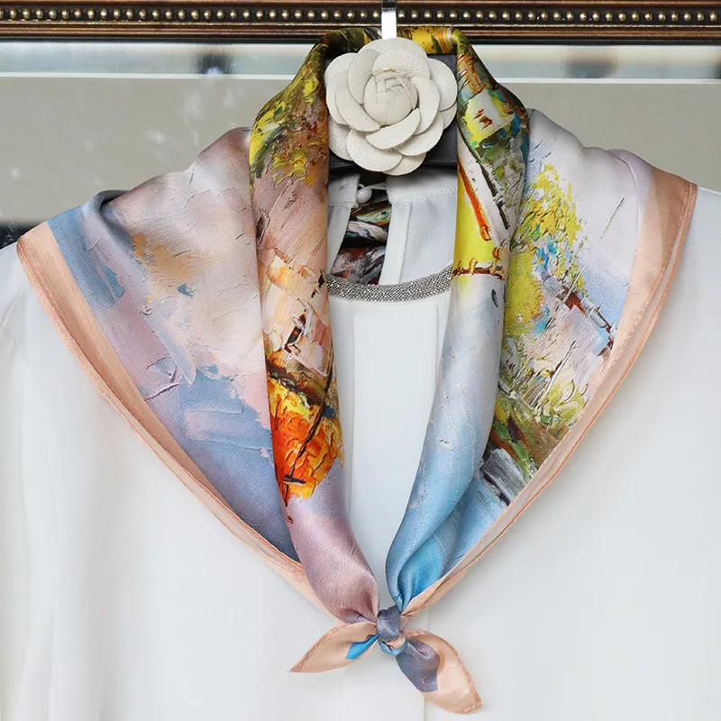 衣都精品- 2022春夏新款100%蠶絲時尚印花百搭小方巾
