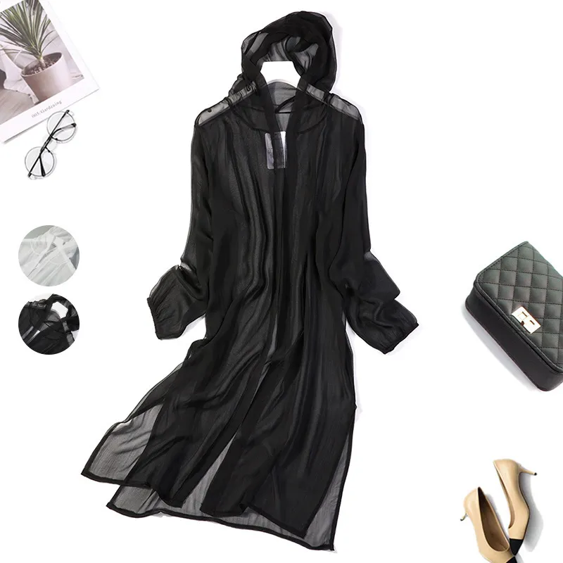 衣都精品- 2022春夏新款中長款長袖連帽開衫薄外套