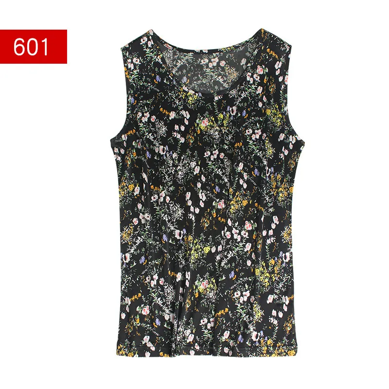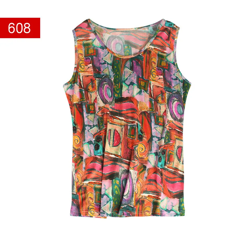 衣都精品- 新款真絲寬鬆無袖數位印花吊帶上衣