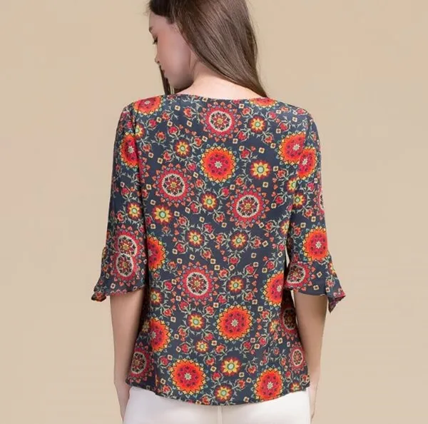 衣都精品-重磅桑蠶絲女裝印花襯衣上衣