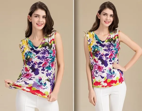 衣都精品-100%桑蠶絲印花無袖顯瘦背心上衣