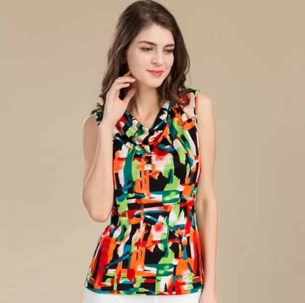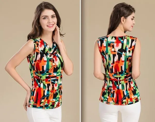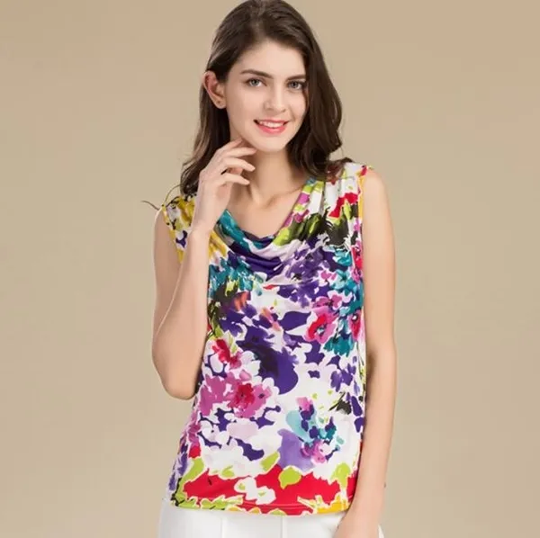 衣都精品-桑蠶絲印花無袖顯瘦背心上衣