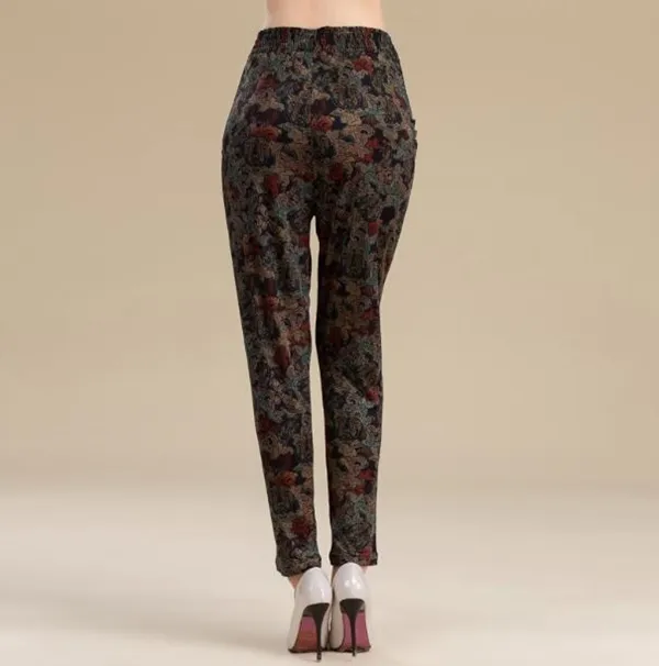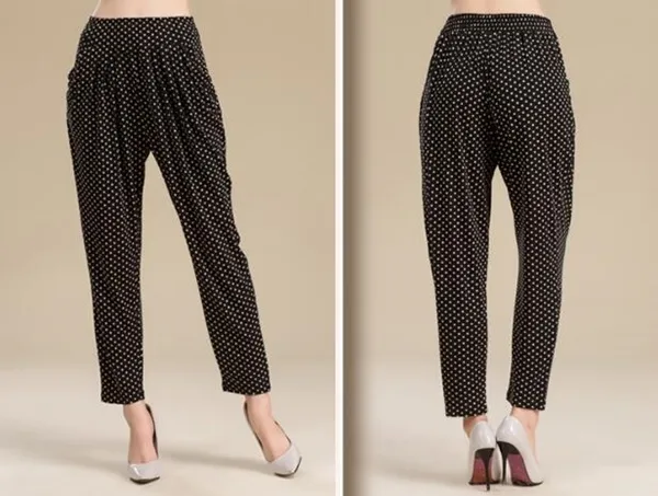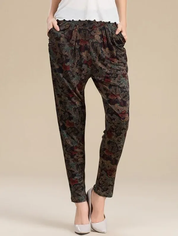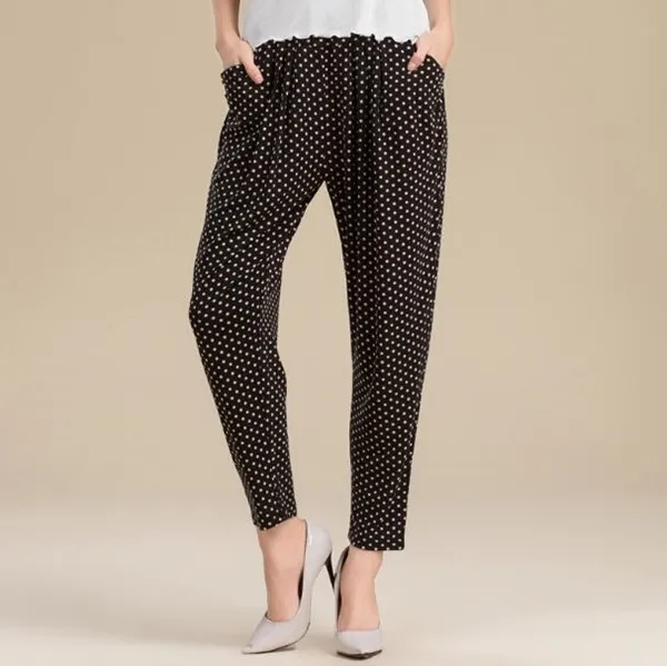 衣都精品-桑蠶絲針織休閒寬鬆印花哈倫褲