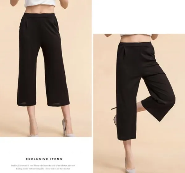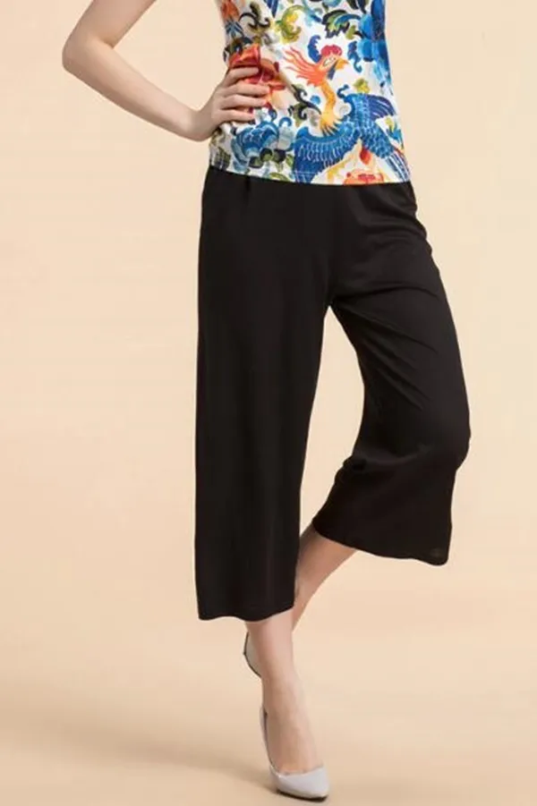 衣都精品-真絲針織亞麻百搭七分九分休閒闊腿褲裙褲